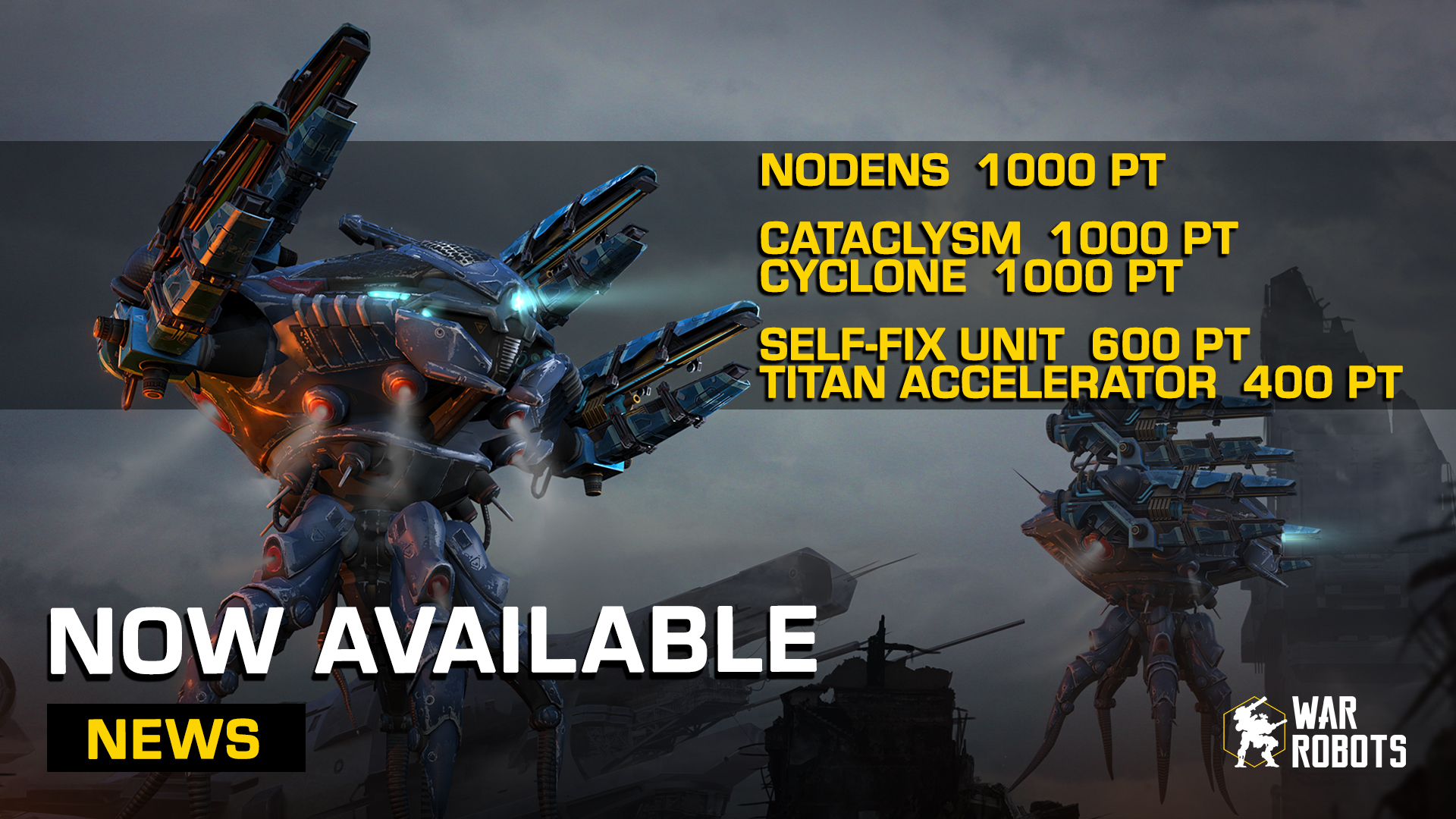 War Robots On Twitter New Tools Nodens Cataclysm Cyclone And 2 Titan Modules Are Now Available For Platinum